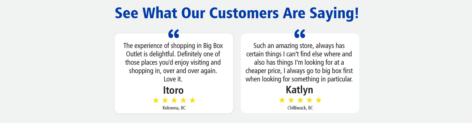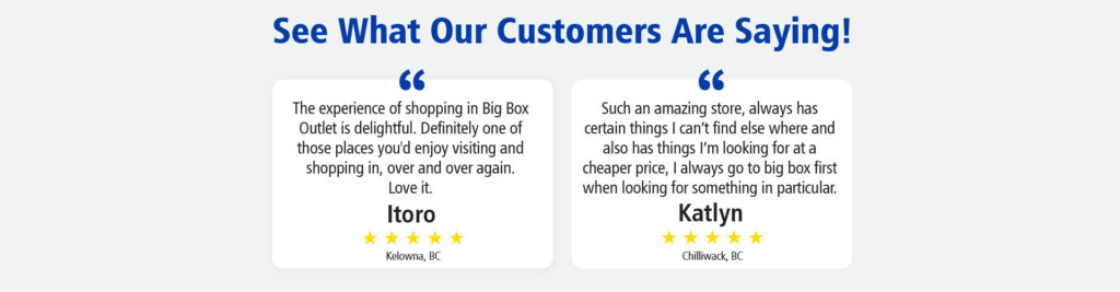 See real customer reviews and in-store experiences from Big Box Outlet shoppers across Canada.